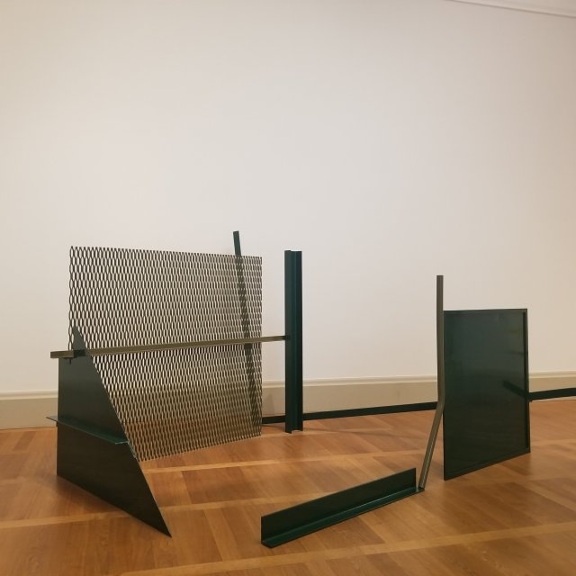 Angular pieces situated in different angles to form a comprehensive imagery. Even with such ordinary shapes, the distinctive arrangement extended the fixed boundary and further overlapped the lines.